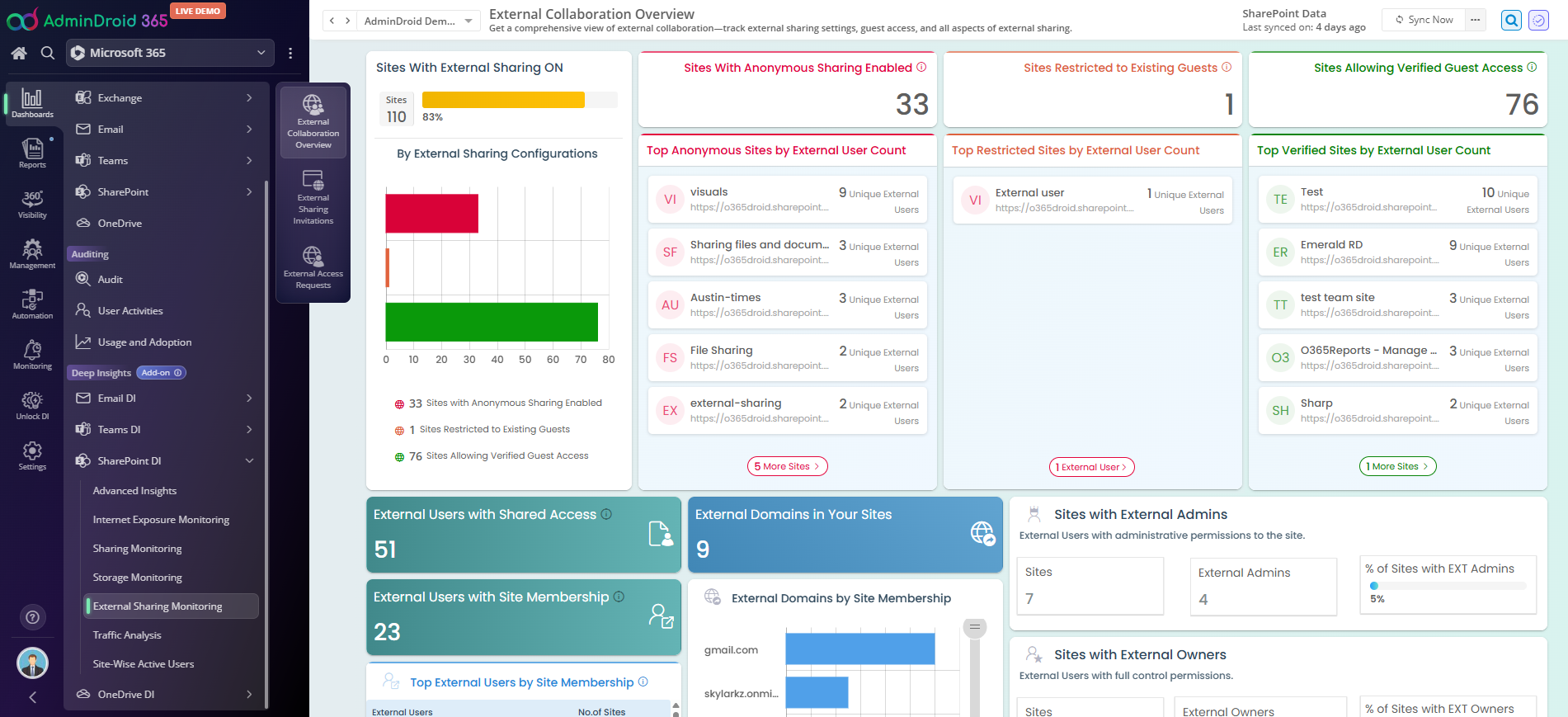 Admin Droid is a comprehensive IT management and reporting solution designed to streamline administrative tasks for Microsoft 365 and other cloud-based platforms. With its intuitive interface and robust features, AdminDroid empowers IT professionals to efficiently monitor, analyze, and manage their cloud environments, ensuring optimal performance and security.