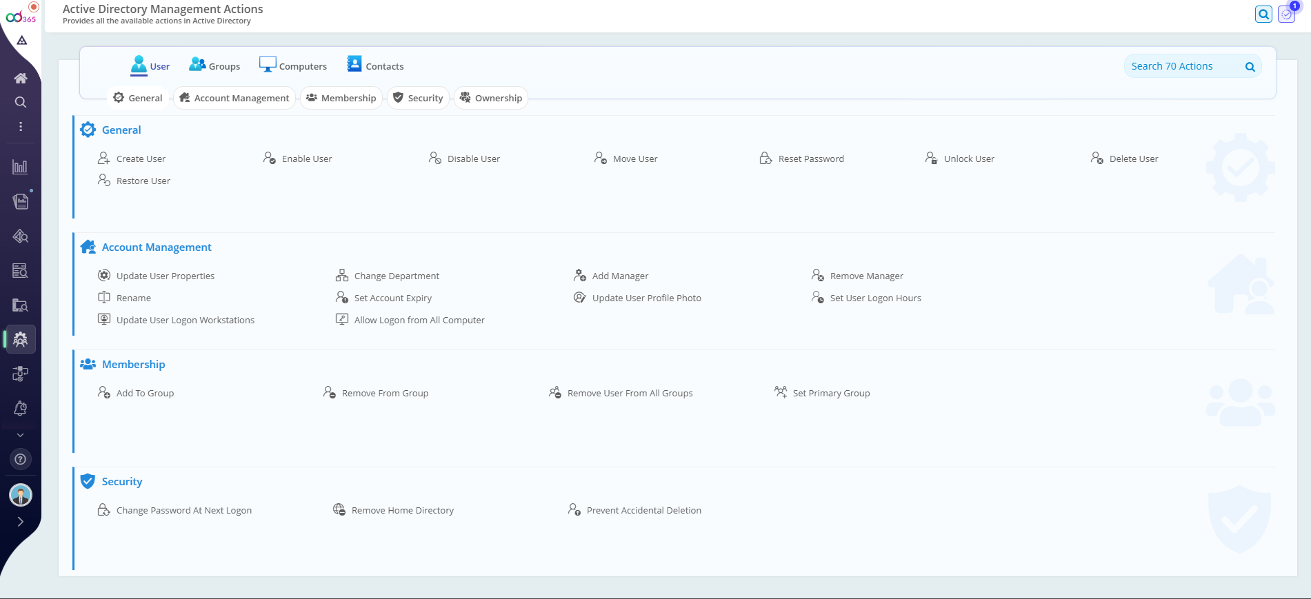 Product Screenshot – AD Management Actions